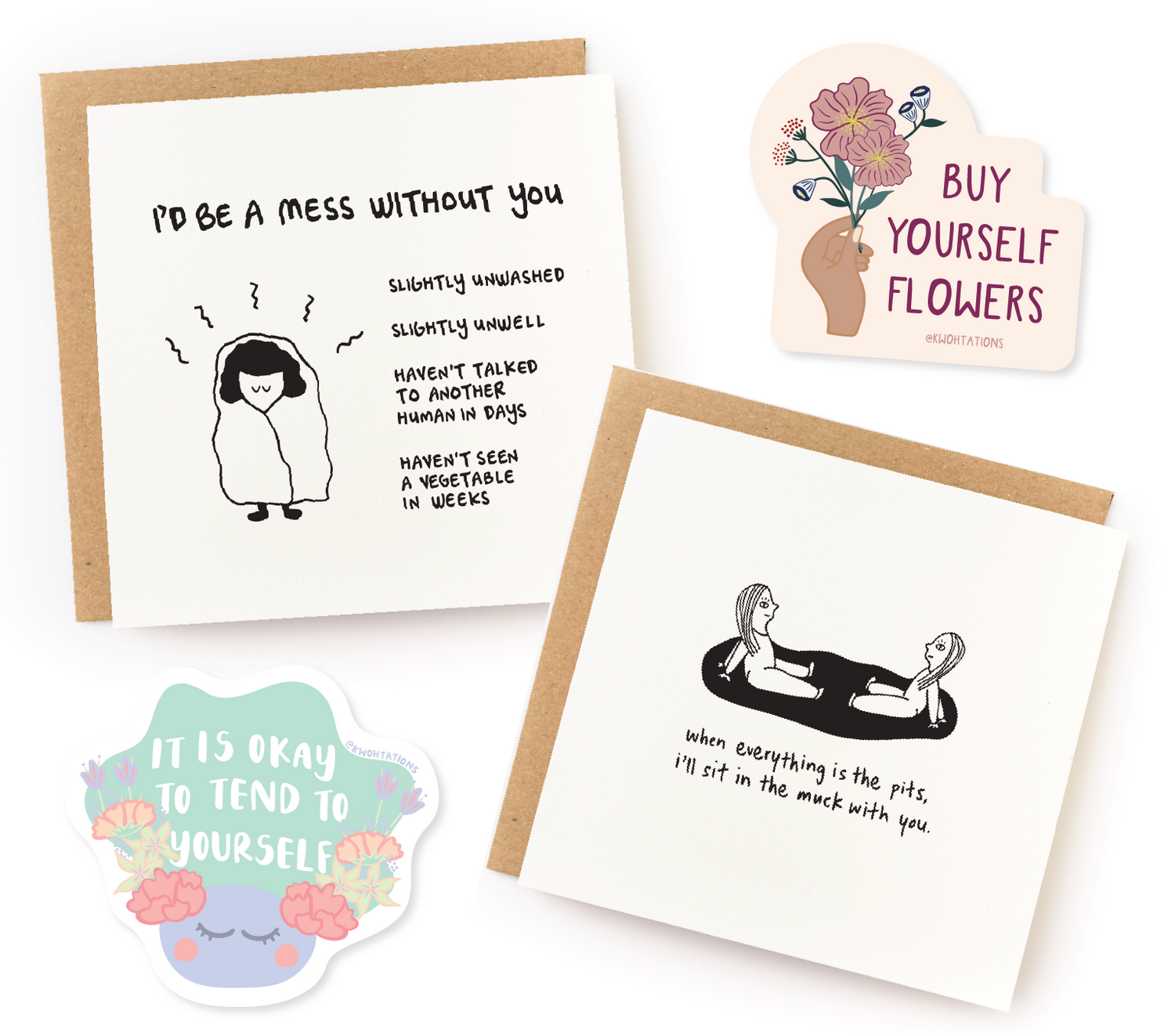Kwohtations cards + products that celebrate the amazing, messy lives we actually live, always with humor and empathy.